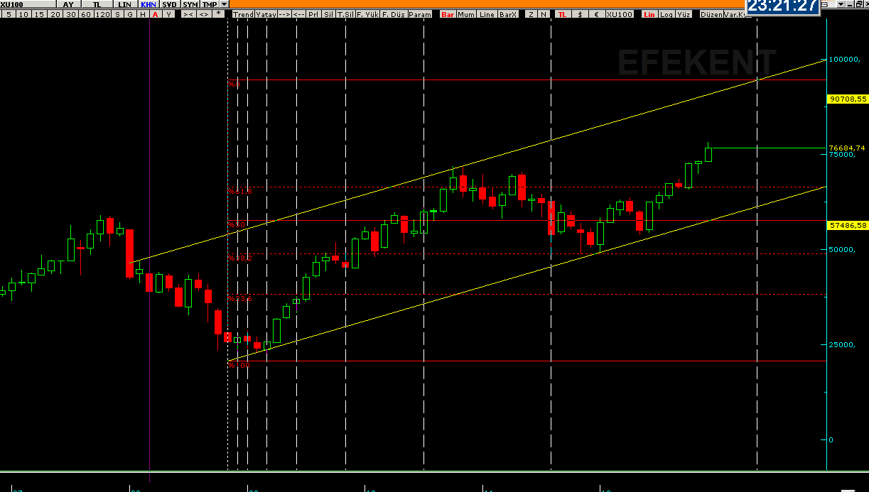XU100; haftalıklarda malumunuz trendde,