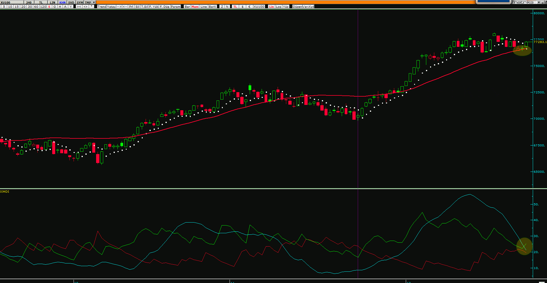 XU100 4H 76666 DESTEĞİ ÇALIŞTI. HAREKETLİ DİRENÇ ÜZERİNE ATTIK.