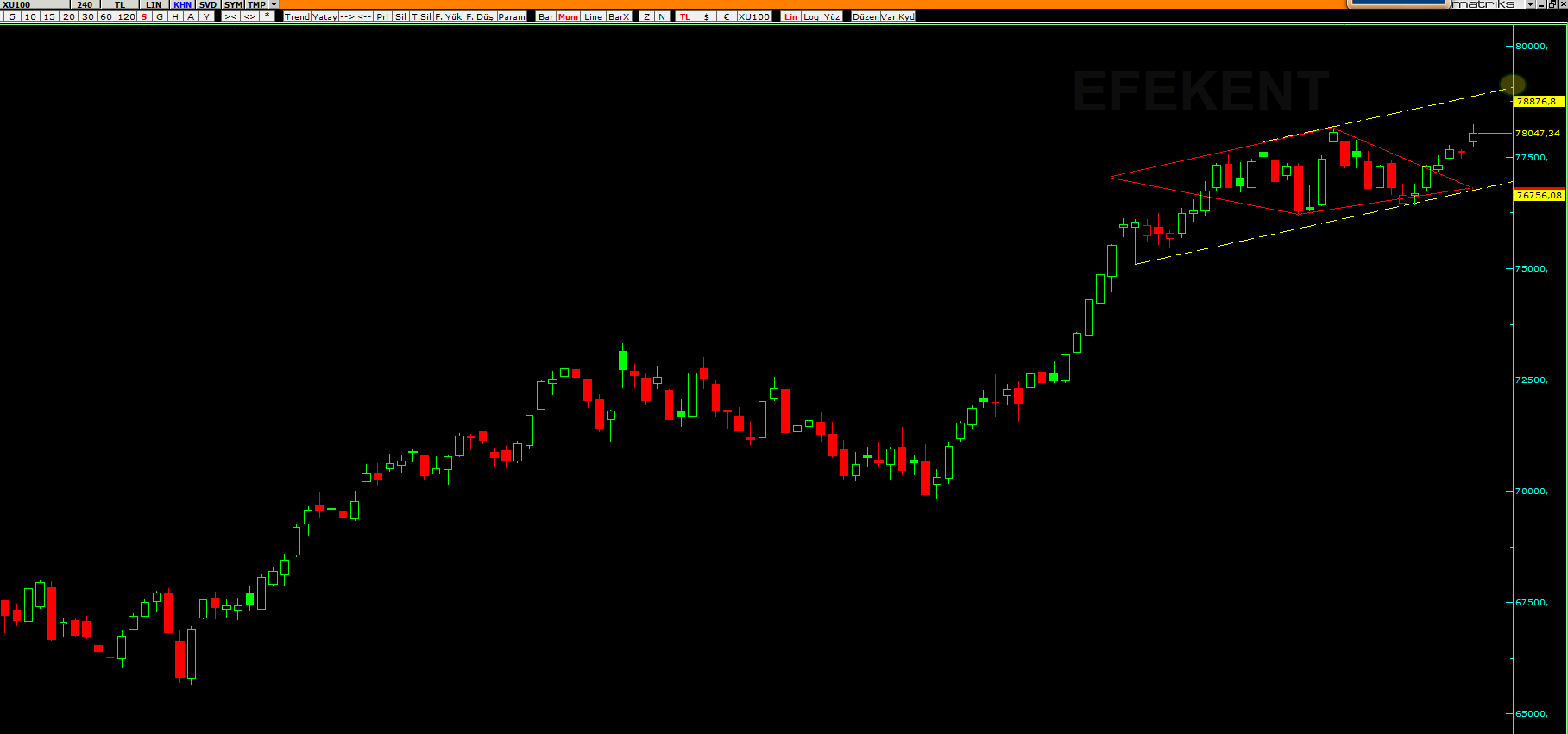 XU100,OLUŞAN ELMAS VE YÜKSELEN KANALA GÖRE YENİ KISA HEDEF 79.047