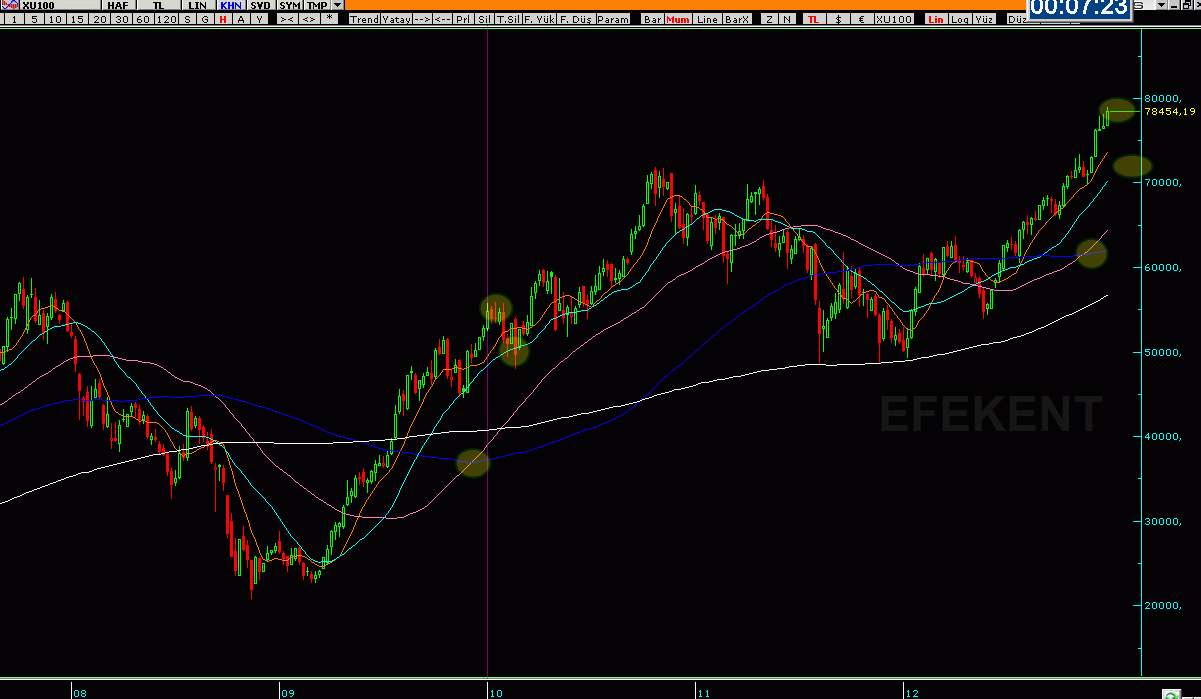 XU100 GÜNLÜK HAREKETLİ STOP SEVİYEMİZ 78826. SAATLİKLERDE STOP ALTINA İNDİK.