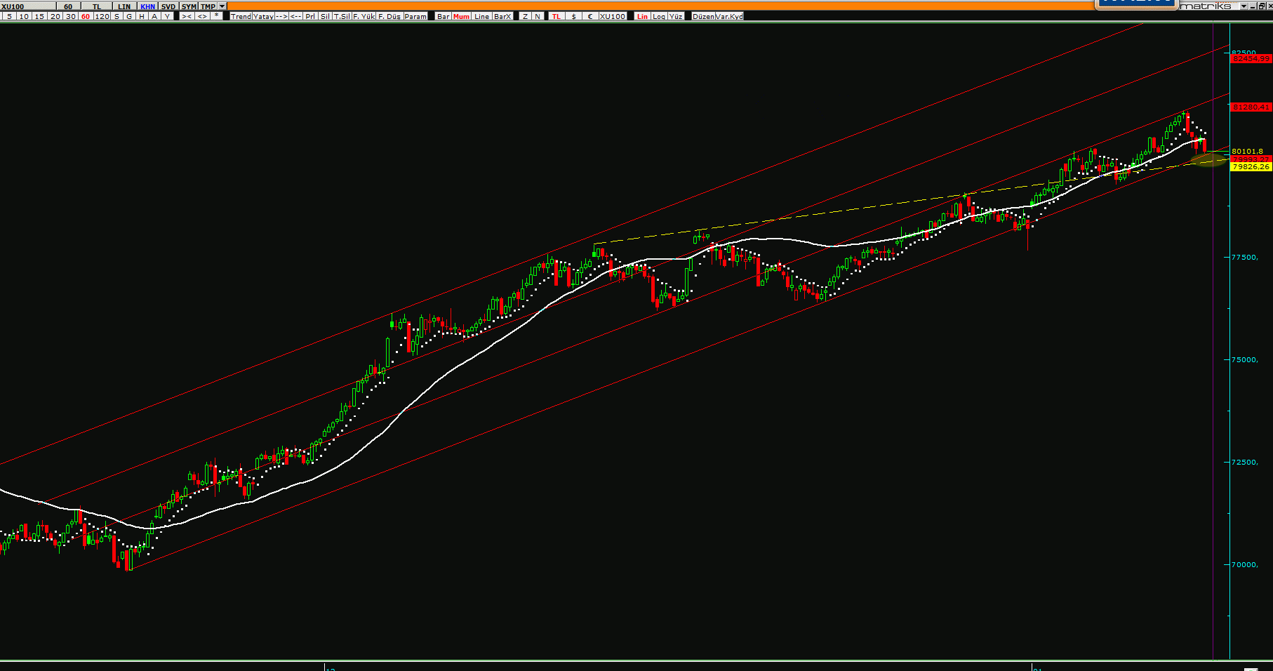 XU100 HAFTALIK TREND VE KANAL GÖRÜNÜMLERİ