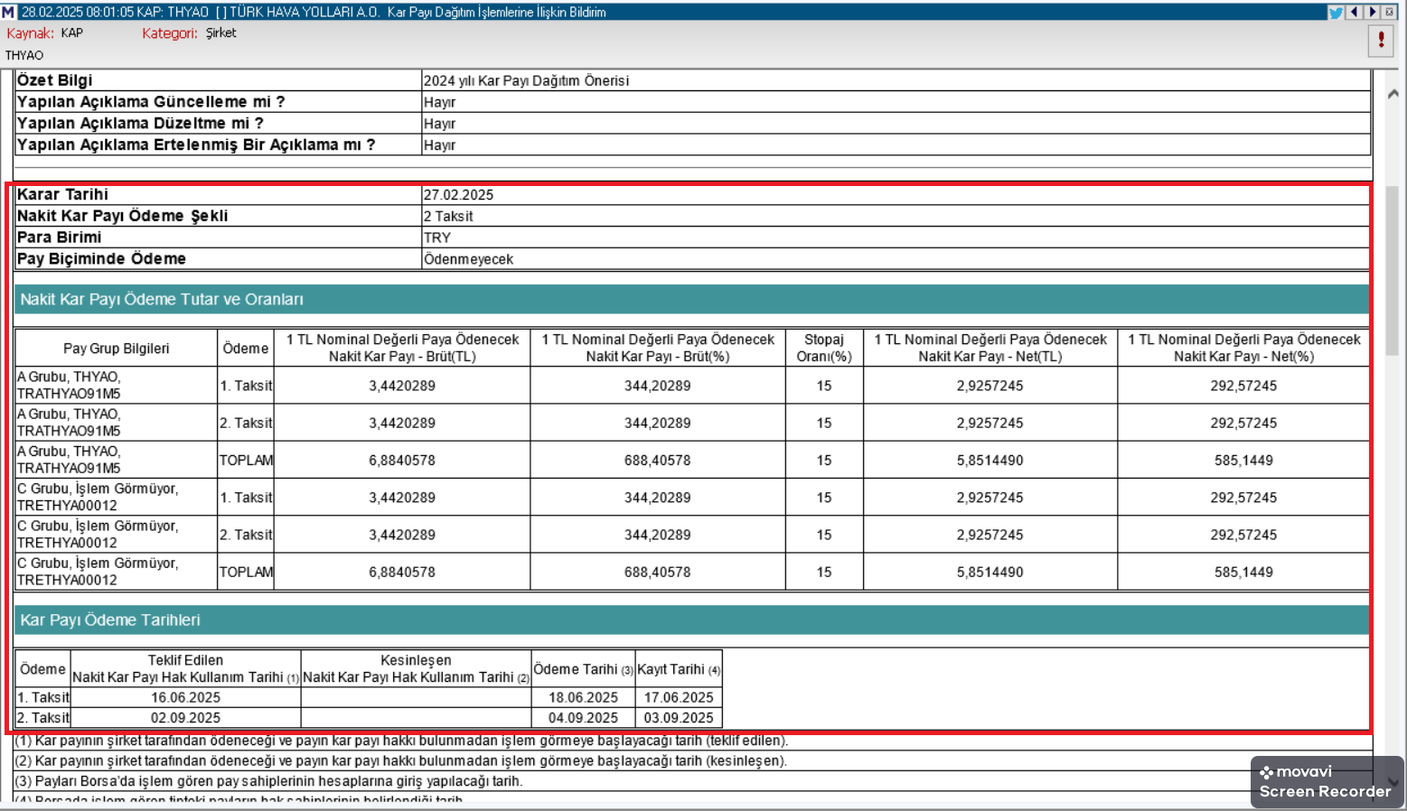Kamuoyu Aydınlatma Platformu'nda (KAP) yayınlanan şirket açıklaması aşağıda bulunuyor: