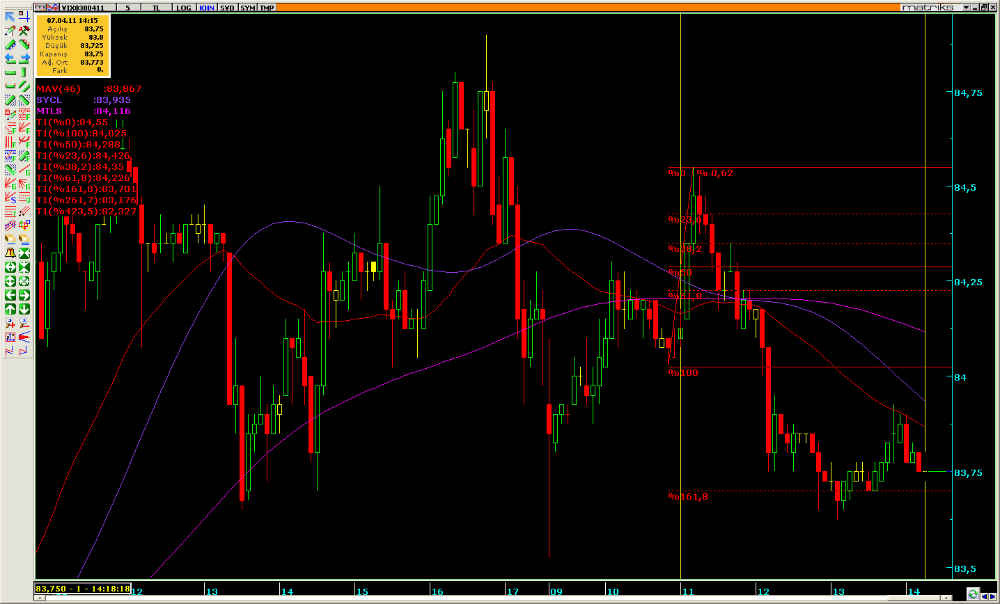 yukarı gtmemiz için 20 dklık 84000 kapanış gelmesi lazım.böyle durumda 84250-84500 ve 85100 kapanış şart ve direnç konumunda.