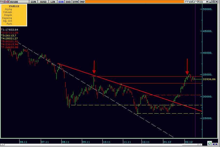 12.900 zirvesi yukarı geçildi, bu hafta ise daha yukarı seviyelere erişildi. Gidişat Ekim 2007’de görülen