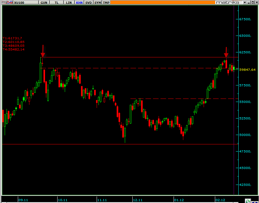 dün 59 bin seviyesinden kapandığını, DJI da 5 aydır devam eden yükselişe borsamızın