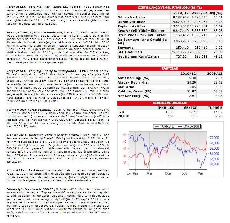 motorin satışlarında ise düşüş görülmüştür. Tüpraş'ın alacak vade gün