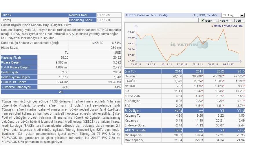 milyar dolar hedef piyasa değeri belirlediğimiz Tüpraş için alım
