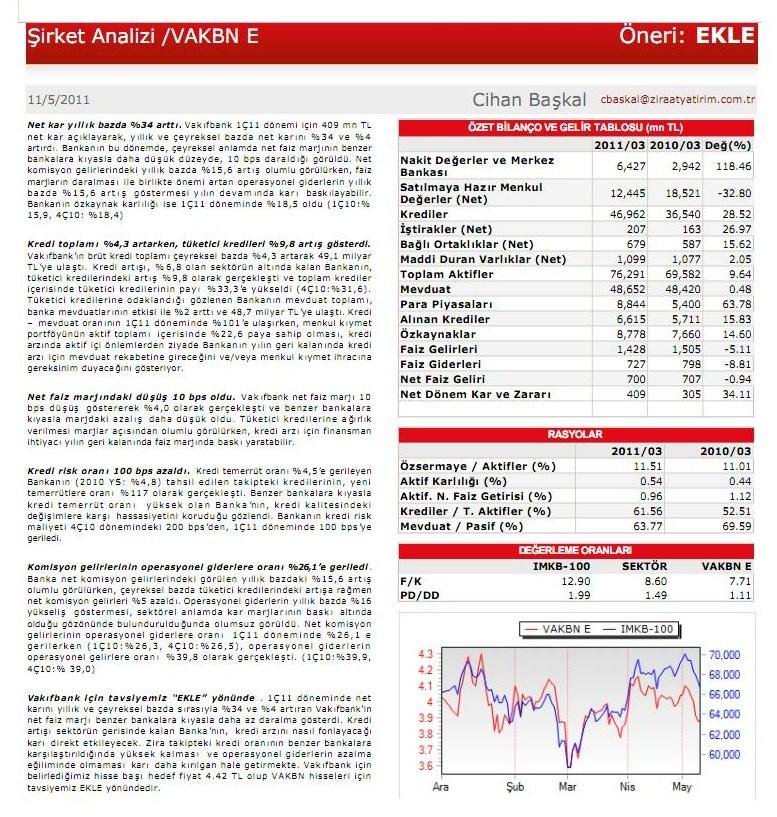 etmişti. Haber Vakıfbank için hafif olumsuz. [VAKBN.IS Mevcut Fiyat: 3.68 TL, Hedef